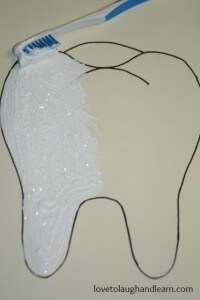 Children will practice brushing in little circles while "cleaning" the tooth with white paint.