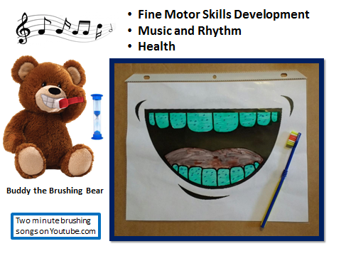 This activity is a great way for children to practice the motion of brushing their teeth in little circles. Children don't have the fine motor skills to properly brush their teeth until the are about 8-years-old. Encourage the children to brush for the full two minutes even if their teeth page looks clean.