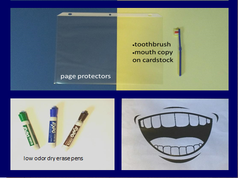 5. Hand out the toothbrushes. Remind the children to NOT put the toothbrush in their mouths because they are dirty.
