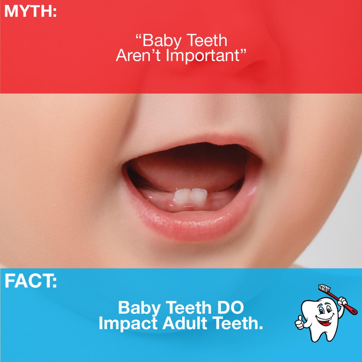FACT:Baby teeth are very important! Baby teeth help children chew their food, talk, and smile. Children typically begin to lose their teeth around 5 years of age. There are consequences to losing baby teeth too young because of tooth decay. Losing baby teeth too early can make it difficult for children to eat certain healthy crunchy foods. Losing baby teeth too soon can also lose the spot for the adult teeth coming in and possibly cause crooked or crowded teeth. Having dental problems early in life can create a bad relationship between a child and the dentist. Children might begin to connect the dentist with pain and make it harder to take them to the dentist. Creating healthy dental habits begins at birth.